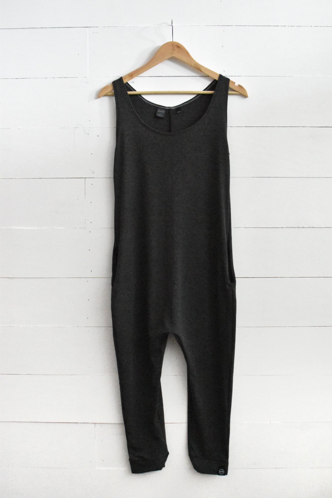 The perfect jumpsuit for those who hate jumpsuits! Only the front part of the top half is attached to the waistband. Gives you the look of an trendy jumpsuit and the convenience of a two-piece outfit.