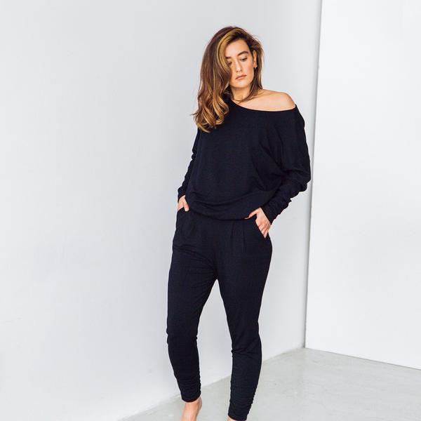 Fabric: MicroModal (pants) & Rayon from Bamboo, Merino Wool & Spandex French Terry (sweater)