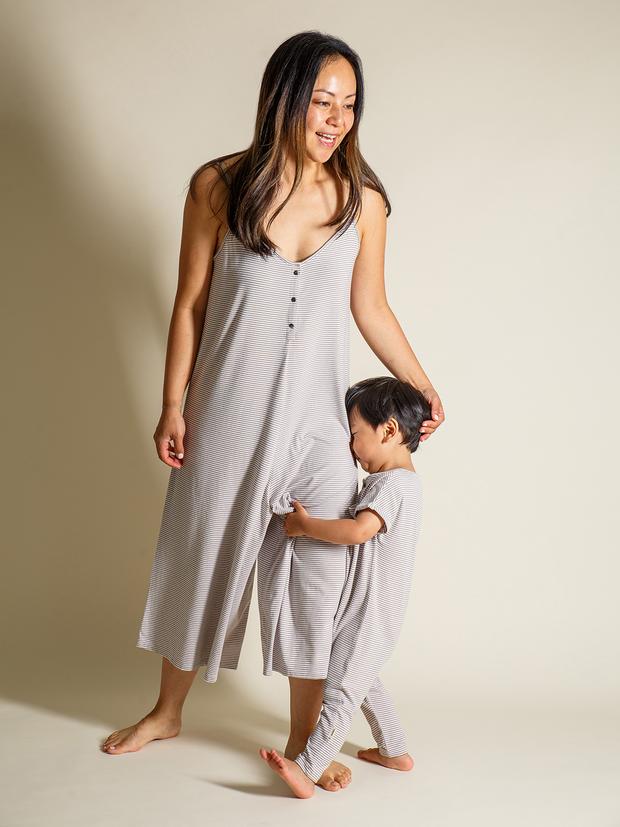 The Rosie jumpsuit is soft, flowy and comfortable. Wear it curled up in bed, out for groceries or dress it up for dinner! Match it to the kids O.G. Bamboo Romper for adorable matching outfits.
