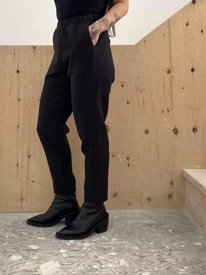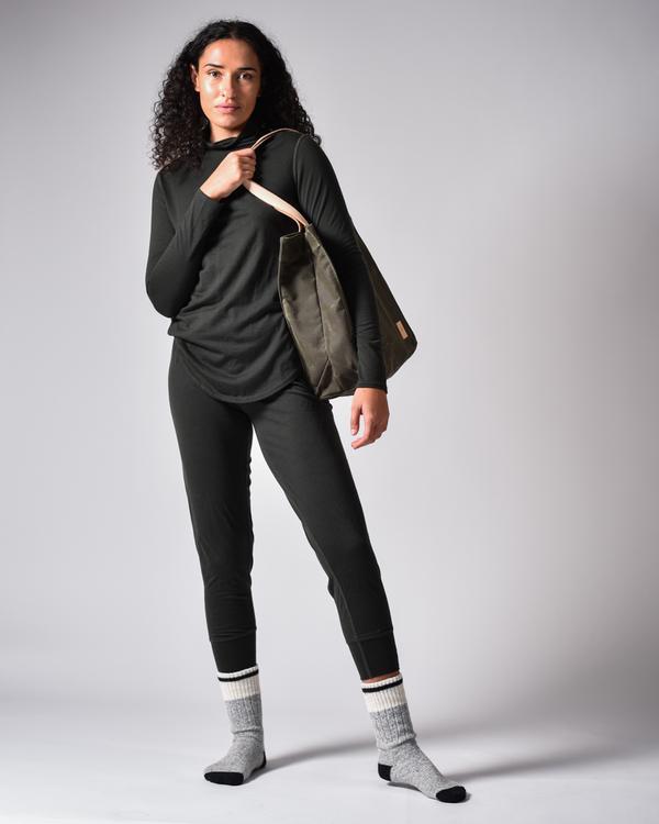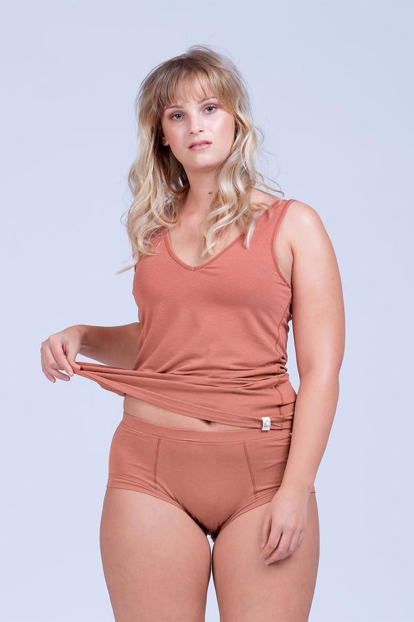 For those of you who, like me, are on team no pants. A medium to high waist underwear you can feel good having your mid-afternoon dance party in. Choose from indigo, black, copper brown or a light grey.